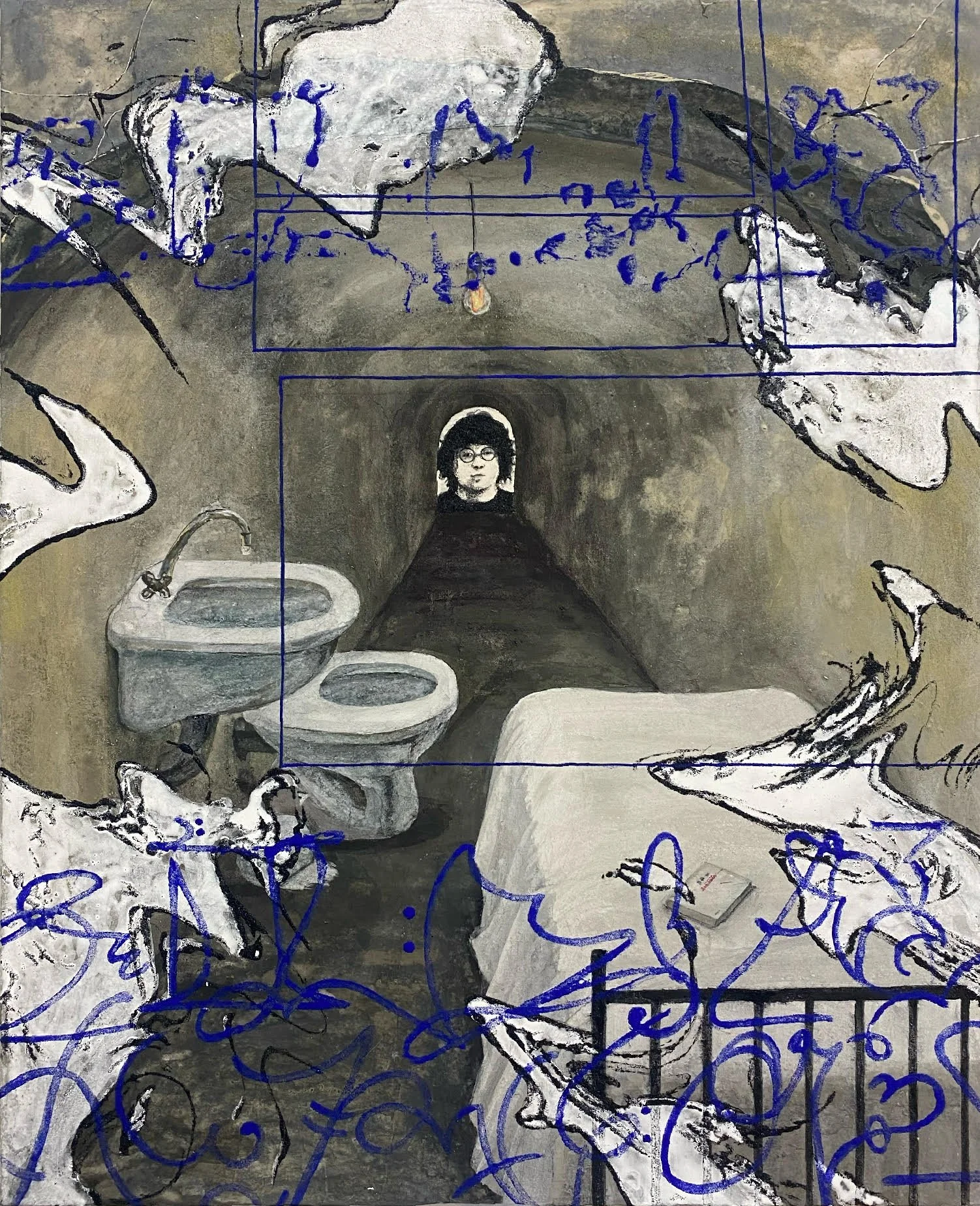 I depict a face in the background of the landscape and a distorted face in the foreground. The multifaceted nature of the face serves to divert attention from our obsession with our own faces; however, the fact remains that we all possess a face, and this reality is inescapable. By employing perspective in my work, I seek to achieve a balance—preventing myself from becoming overwhelmed by obsession while maintaining an awareness of reality.
